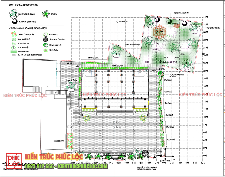 Mặt bằng diện tích nhà gỗ và sân vườn