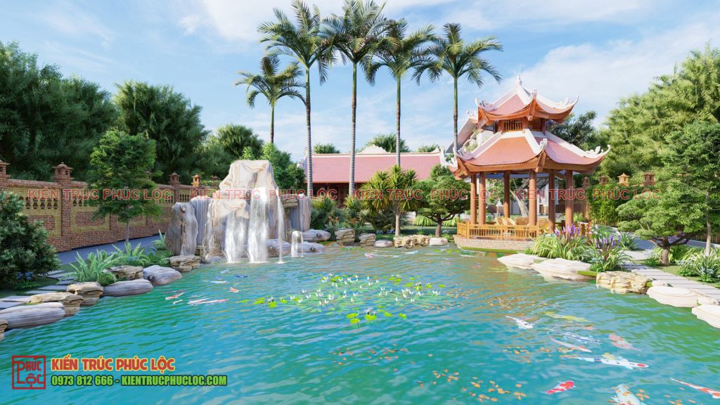 • Hồ cá Koi: cá Koi tượng trưng cho sự may mắn và tài lộc nên được rất nhiều gia chủ yêu cầu thêm tiểu cảnh này vào khi cho vào cảnh quan sân vườn nhà gỗ.